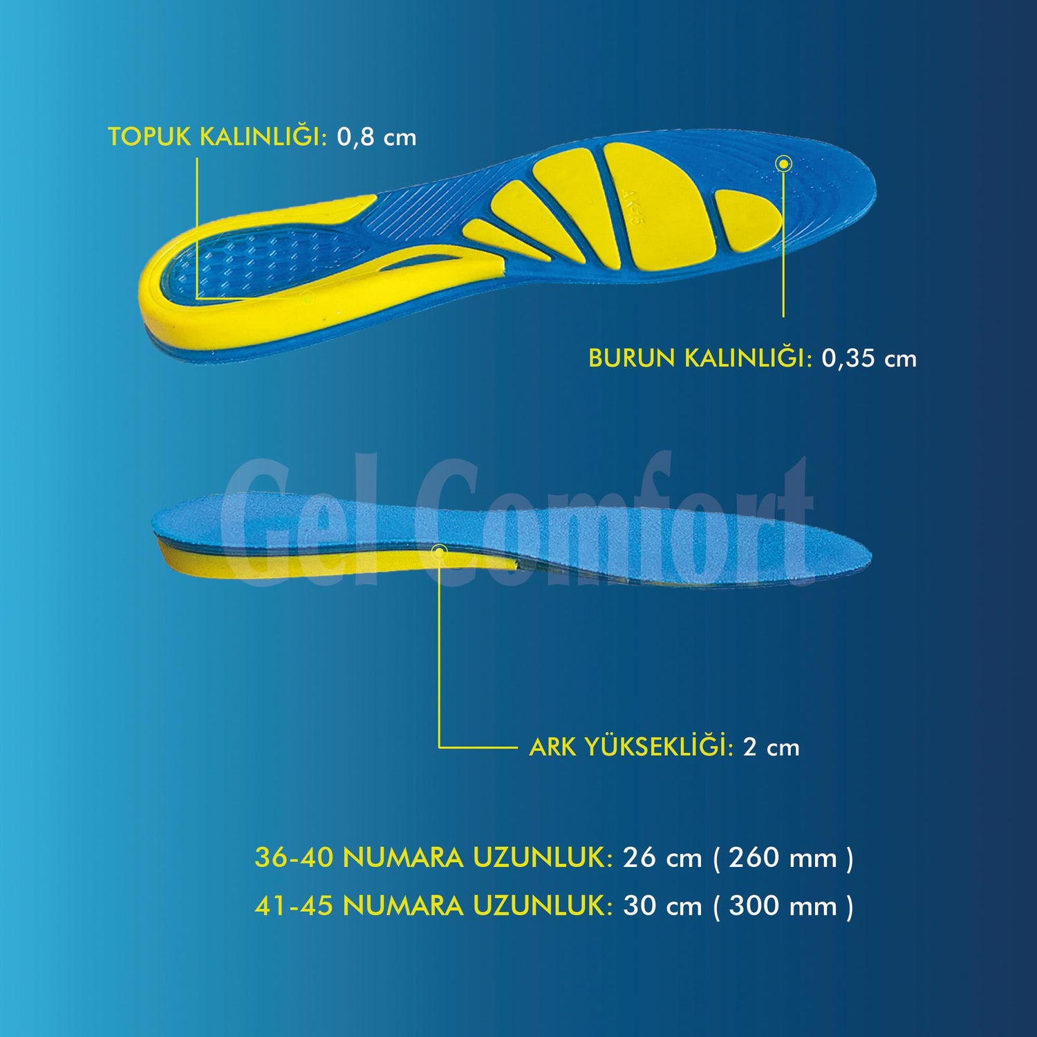Topuk ve ön ayak için yastıklı destek sağlayan, her adımın etkisini emerek ağrılı basınç noktalarını azaltan benzersiz tasarıma sahiptir. Jel katman, topuğu sarar ve ek stabilite sağlamak için ayak kemerini nazikçe destekler. Topuk ağrısını, kemer ağrısını, plantar fasiit ağrısını hafifletir ve ayak yorgunluğunu azaltır. Gün boyu ayakta duran kişiler için mükemmeldir.